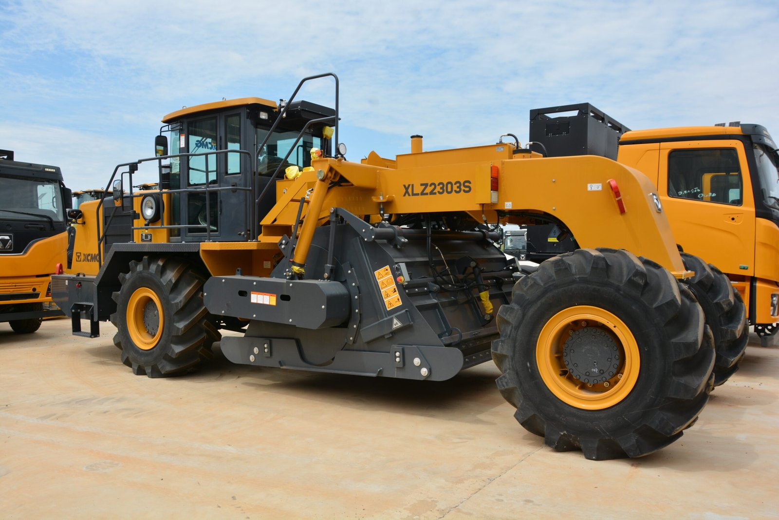La XLZ2303S está diseñada para ofrecer un fresado de alta precisión mediante un rotor accionado por motor de velocidad variable con reductor, junto con herramientas de corte —fresas— dispuestas con separación óptima, lo que asegura una mezcla homogénea y un fresado eficiente del asfalto o del suelo estabilizado. El sistema de tracción —con ejes motrices delanteros y traseros, dirección en las cuatro ruedas y neumáticos de base ancha de baja presión— le brinda excelente estabilidad y adherencia, incluso en terrenos irregulares o difíciles, y permite maniobras más seguras y controladas.